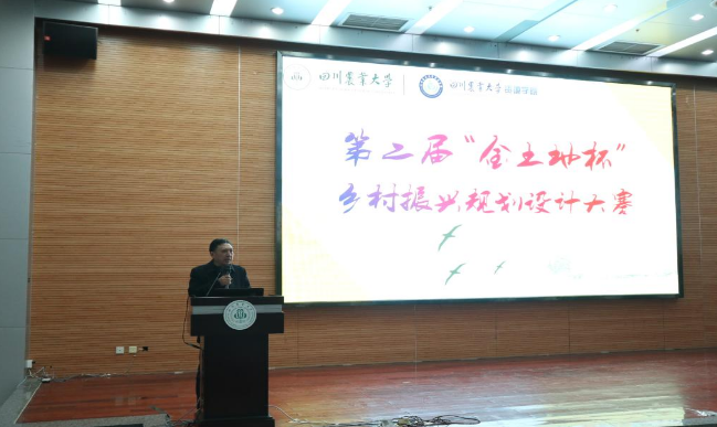 2018年12月21日下午,我公司独家赞助的川农“金土地杯”第二届乡村振兴规划设计大赛在四川农业大学二教报告厅圆满落幕,由四川农业大学教务处、资源学院主办,成都农高园(生态旅游区)管委会、资源学院团委、资源学院土地资源管理系承办。公司刘奎副总及办公室副主任艾百灵出席此次大赛,学校教务处副处长刘涛、资源学院副院长高雪松、 成都农高园(生态旅游区)管委会乐子祺、资源学院土地资源管理系主任夏建国等多位老师担任评委并有300余名师生参与到了此次比赛中。同学们精彩的答辩和评委们专业客观的点评指导,让大赛进行得有声有色,获得了观众的一致好评。