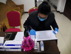 (二)防控物资准备到位。公司已为第一批集中办公的复工人员配备齐全相应的防控物资,如口罩600个、84消毒液1桶(20升)、酒精1桶(30升)、测温枪2支、杀菌湿巾1件、洗手液20瓶、硫磺皂1件、喷雾器1台、喷洒壶30个、医用手套20双、预防新冠肺炎中药10付。